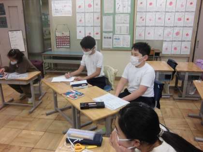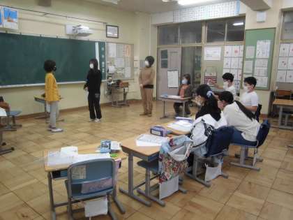 会話の練習をしました。見ている友達は、みんなよく聞いて「なるほどね!」と、うなずいていました。英語クラブは、外部の先生にも一緒に指導していただいています。