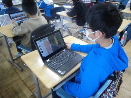 自分で考えてプログラミングをつくりました。ここから先は、どうやって組み立てていこうかな?などとみんな夢中になって取り組んでいます!どんなものができるのか、楽しみです。お互いに試してみて交流もします。