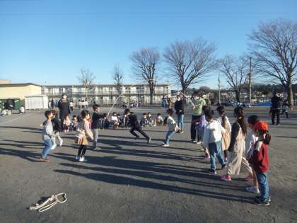 先週の児童集会を延期して実施しました。各学級を2つに分けて、それぞれ3分間で記録をとっています。このひと月休み時間も声をかけあって、練習をしていました。はじめに体育委員の手本やルールを見てから挑戦が始まりました。1年生でもとても上手に跳べるようになっています。