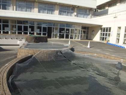 冷え込みが厳しくなった先月末くらいから、鳥との戦いが始まっています。早朝、羽音も立てず静かに3段池に舞い降りるサギ1羽。ホイッスルを鳴らしても、手を打っても飛び立ちません。ふわりと1歩(?)動く程度です。1番下の池には大きめのコイたちがいるので、ヒヤヒヤします。魚たちの観察を楽しみにしている子供も多いのですが、やむなく1番下にもネットをかけました。一方、1年生が植えたパンジーと春咲きの球根もカラスに狙われ始めました。生活科の授業で「どうしたら球根を守れるか」「自分たちでできる工夫はないか」と話し合ったそうです。網をかけたり、キラキラ光るCDをかけたりして対抗しました。