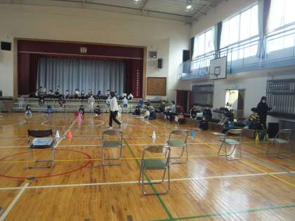 学習発表会1(2/8) 公開日 2022/02/08 更新日 2022/02/08 お知らせ 昨日から体育館での練習が始まりました。はじめは、自分の場所(立ち位置)の確認やマイクの確認です。1年生も2年生も、台本を手に全体の流れをつかんでいました。