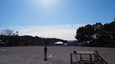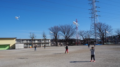 これまで「むかしあそび」として、羽つきやコマ、けん玉などをしてきました。凧上げは、自分のオリジナル凧を作って、広い校庭であげます。雪予報の前の真っ青な空に、ふわりと凧が浮くだけで、大喜びの1年生。ぐんぐんと高く上がったのもあり、気持ちも晴れやかになります。