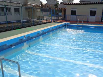 猛暑が続きます。気持ちの良さそうなプールさえ入れません。これだけのお天気だと、水質管理も大変。すぐに塩素が弱まってしまったり、水温が高くなりすぎて藻が生えやすくなったりと気が抜けません。子どもたちが入れないときでもこまめに見回りをして、調節を行います。プールサイドでは39度になることも多く、WBGT(暑さ指数)も危険領域に入ってきます。