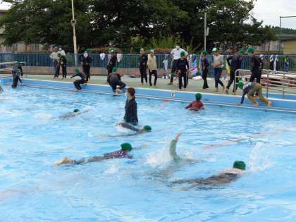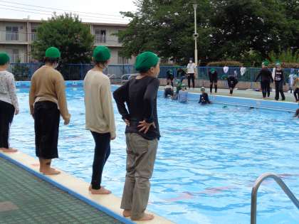 番なので、「服は脱がない」「泳ぐのではなく、浮いている」ことを教わりました。自分のズボンで「浮き」を作る実習も手こずっていました。体験してみないと分からないこともたくさんありました。