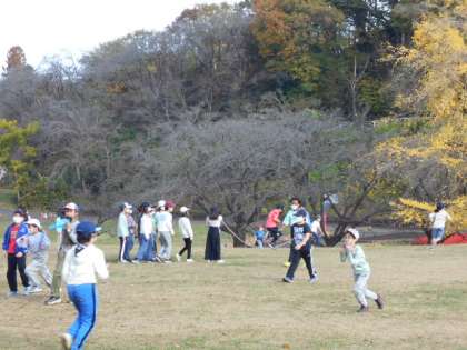晩秋の広場でいただくお弁当は、美味しかったことでしょう。午後は、大なわや鬼ごっこ、だるまさんがころんだなど、自分たちで相談して決めた遊びを楽しみました。3年生は、リードしている4年生の姿を1年後の自分だと想像しながら過ごした1日でした。