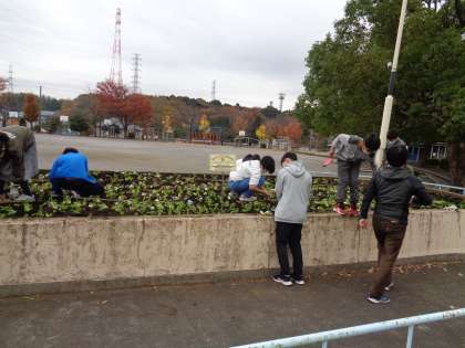 理科・栽培委員会がお世話をしている花壇を、先週きれいにしてくれました。秋植えの花の苗を植えるためです。用務主事さんが市役所から苗を運んでくれた後、ボランティアコーディネータが委員会活動をしやすいように下準備をしてくださいました。冬はクスノキの陰に入ってしまうことの多い花壇ですが、春に向けてお世話をしていきましょう。