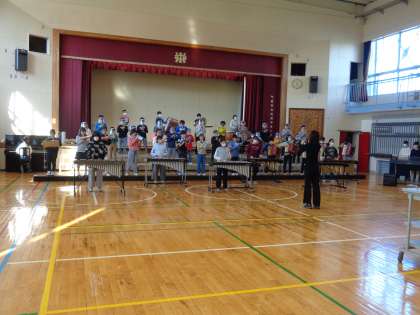 9日(金)の音楽朝会で、5年生が連合音楽会に向けた演奏を披露します。当日、体育館では4年生と6年生だけが鑑賞し、1〜3年生までは教室で動画を見ます。今日は、その動画撮影をしました。実行委員の挨拶の後、合奏、合唱と続きます。合唱のソロパートの4名は、特別練習をして、さらに磨きをかけていました。