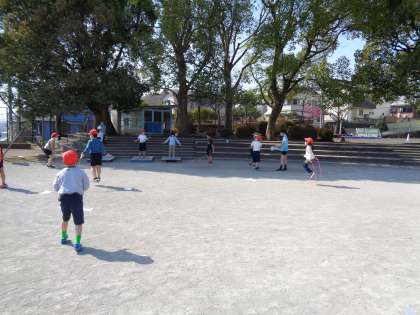 今日も「春だね〜。」と口々に言いながら、休み時間は校庭に出ました。5種目チャレンジブロンズカードの難関である「2重とび 10回連続」に向けて練習しています。ベルマークで買っていただいた縄跳び板も大活躍。