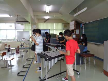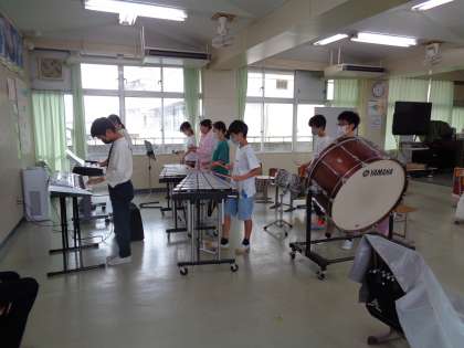 グループごとに、合奏練習をしていました。テンポをとりながら、リズムやメロディを合わせていきます。準備室からはリコーダーチームの音が聞こえてきます。先生がChromebookで録画していました。