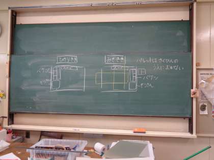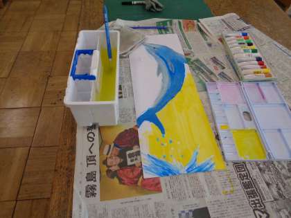 図工の授業2【1年】(6/23) 公開日 2023/06/23 更新日 2023/06/23 お知らせ 水彩絵の具では、多くのものを扱うので、机の上の片付けも大切です。黒板やセンターテーブルには、今日の学習していることが残っています。