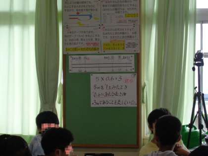 算数少人数の研究授業でした。今日は、ジャンプコースをメインにして実施しました。新しい学習課題に向き合うとき、これまでの学習をいかに想起し、活用していくか、ということがとても大切です。みんなで学んできたことを掲示してあるので、手がかりはないかと見ている姿が「自力解決の時間」にたくさんありました。