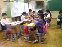 今日は朝モジュールがなかったので、新出漢字の練習から始まりました。その後、「1分間スピーチ」をします。「好きなあそび」というテーマで、1分間伝えたあと、隣の人が友達のスピーチ内容を全体に紹介します。「すがたをかえる大豆」の初発の感想をノートに書いて、書けた人同士がどんどん交流をしました。