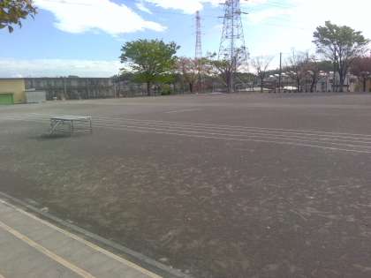 今日も朝からラインを引いている教員の姿が校庭にありました。