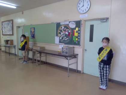登校直後のあいさつ運動の様子(1階・2階)(4/19)