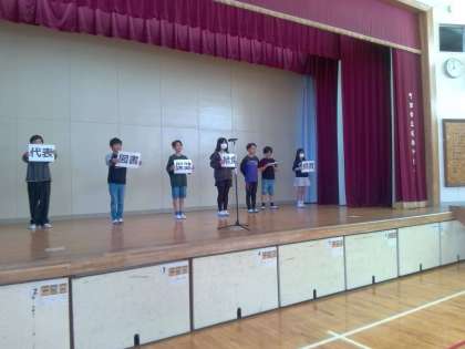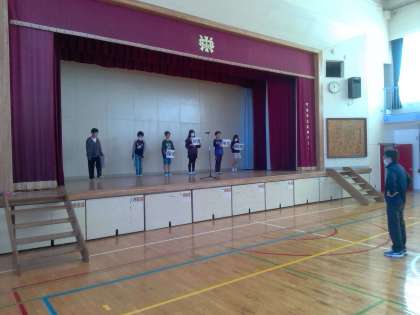 委員会集会前、各委員長が体育館でリハーサルを行いました。
