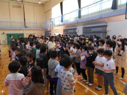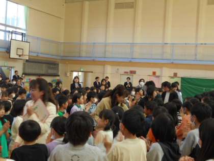 子どもたちの間を通って退場しました。