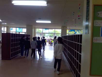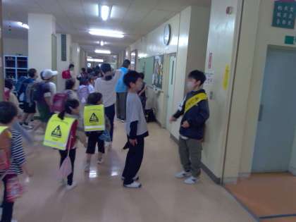 6年生による朝の1年生の見守りとあいさつ運動の様子です。