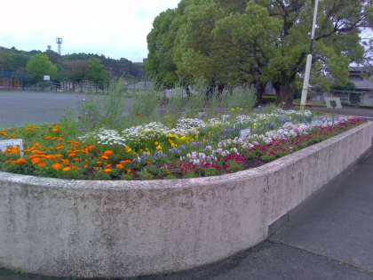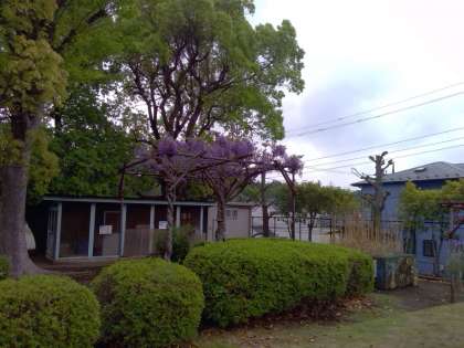 子どもたちを、学校花壇 藤の花、2年生の育てているお花が毎日出迎えてくれる季節となりました。