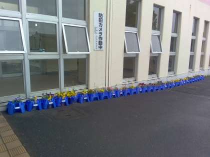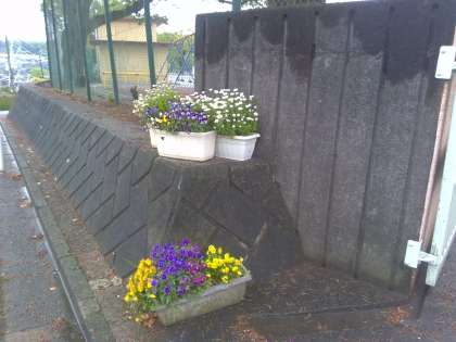 2年生が育てているお花と、正門のプランターのお花です。給食門から正門にかけて、ボランティアの方々が雑草を抜いたりお世話を毎日してくださっています。