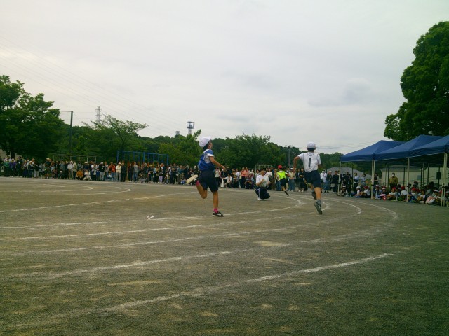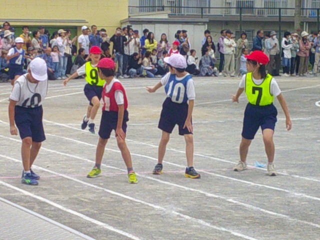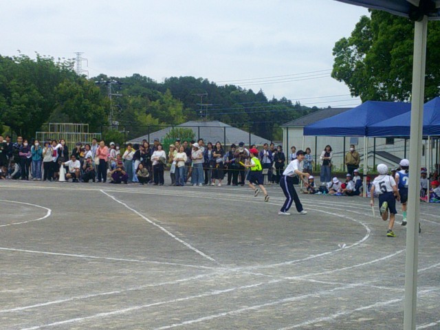 みんなたくさん練習したリレー、とても盛り上がっています。