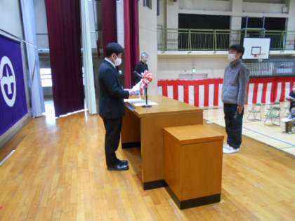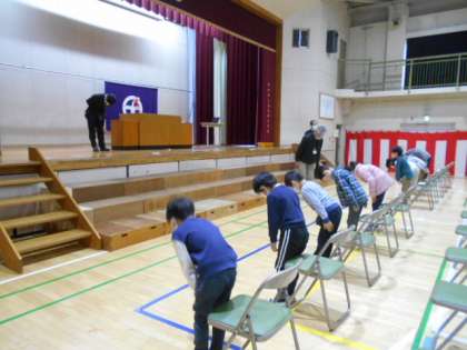 25日の修了式の修了証授与の練習を体育館でしました。