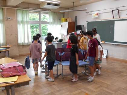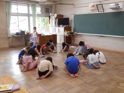 校庭と教室に分かれて活動しました。