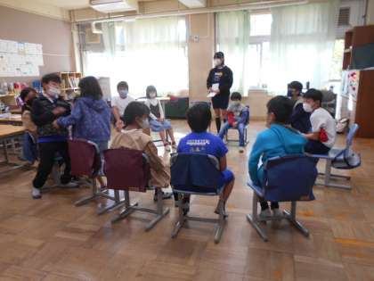 2組グループは校庭で活動しました。