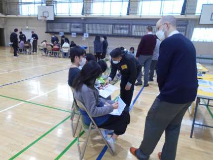 体育館に英語をあふれていました。