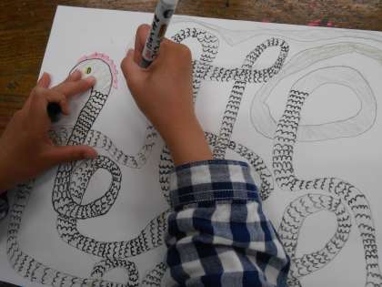 4月10日(月)&11日(火)【3年】図工「なが〜いへび」(2)