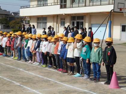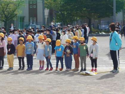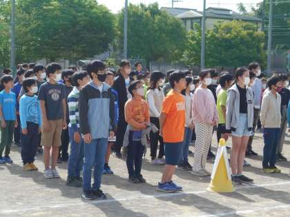 全校児童が校庭に集まって「1年生との対面式」を行いました。