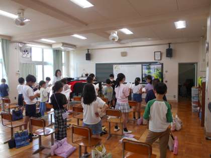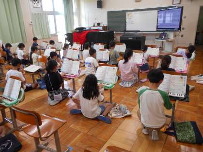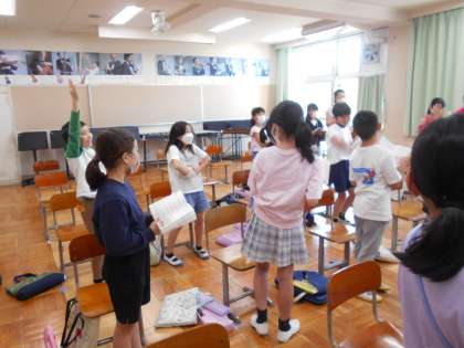 手拍子をたたいて楽しそうに運動会の歌をうたっていました。