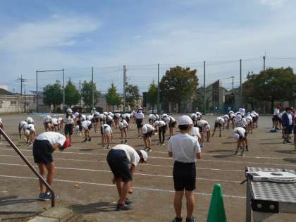今週の金曜日に実施される連合体育大会にむけて一緒に練習をしました。