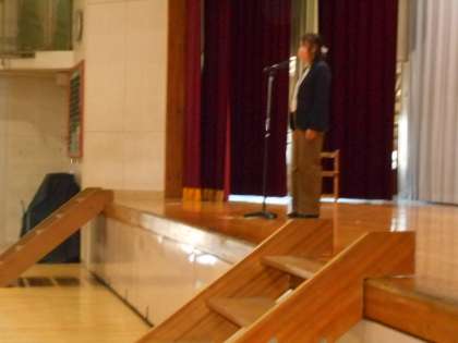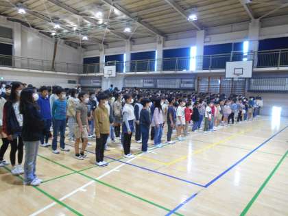 10月16日(月)全校朝会 南二小へのお祝いメッセージ撮影(1)
