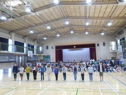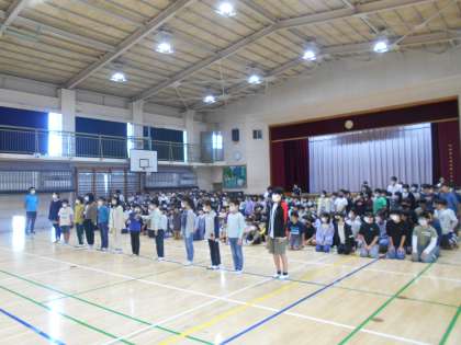 10月16日(月)全校朝会 南二小へのお祝いメッセージ撮影(2)