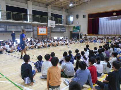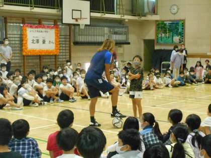10月19日(木)3時間目 北澤 豪さん来校しました(4) 公開日 2023/10/19 更新日 2023/10/19 お知らせ 3時間目に全校で北澤さんの話を聞きました。 ご自身の小学生時代のお話をしてくださったり、 児童とパス交換をしたりしました。 あっという間の時間でした。