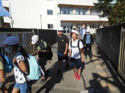 全校児童が集まって出発式を行いました。