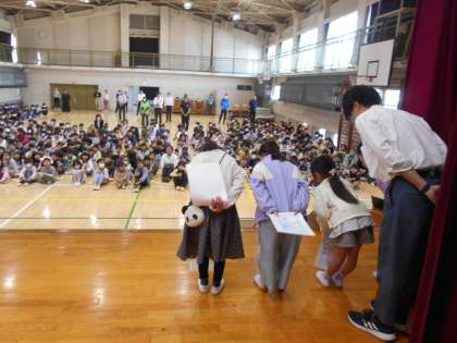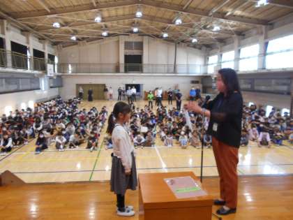 校長先生からはやさしい心とやさしい言葉で友達に接するようにお話がありました。