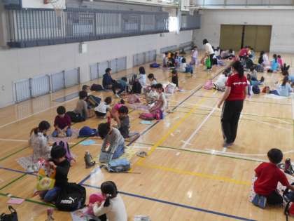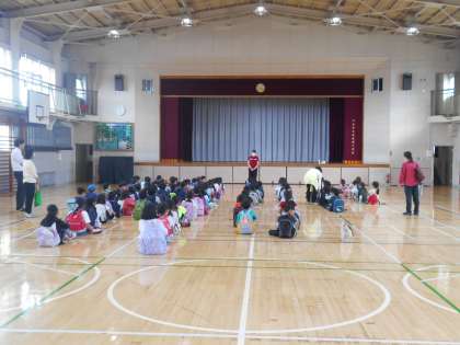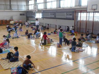 1年生と2年生は体育館で一緒にお弁当を食べました。