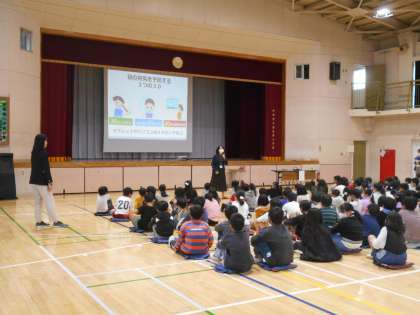 クロームブックを使った授業の様子やセーフティ教室の様子を見ていただきました。