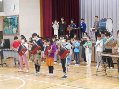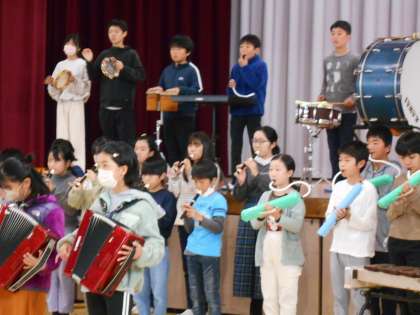連合音楽会に向けて5年生が合奏の練習をしていました。