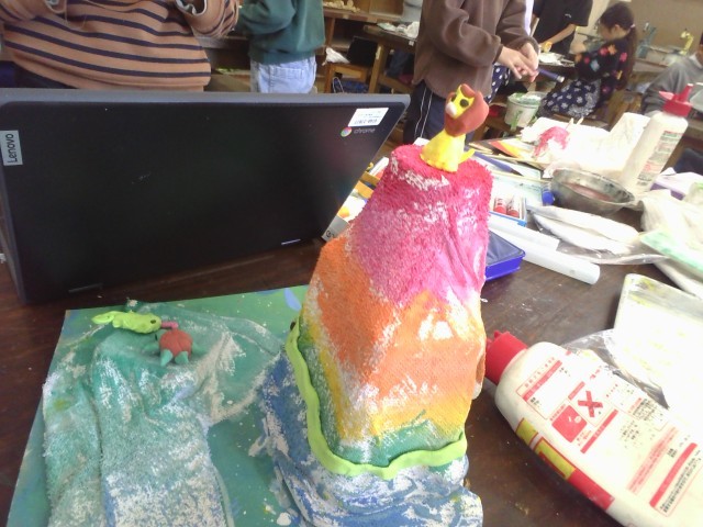 もう一クラスは、「マイ・アイランド」という題材の後半に入りました。主人公やストーリーなどを自分なりに決めて、島に装飾を行っています。このクラスは、来週で最終回となります。