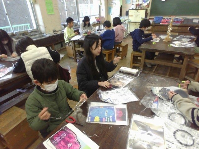 子供たちには、長い針金を扱うときは安全のために先を曲げるように前回指導をしましたが、一週間後でもしっかりと覚えて安全に作業をする様子が見られました。
