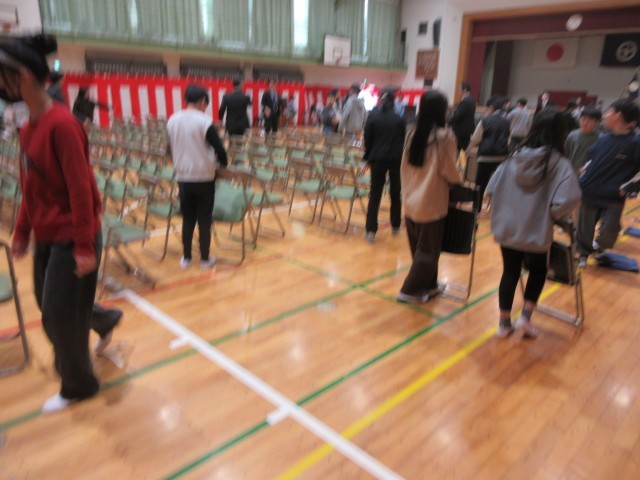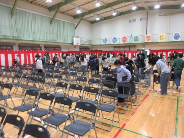 離任式後、5年生が明日の卒業式のために、また椅子等を並べてくれました。