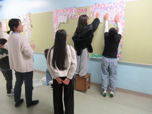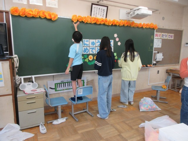机、椅子の移動、掃除、そして1年生教室の飾りつけ等、とてもよく頑張っていました。