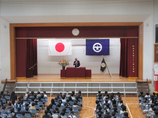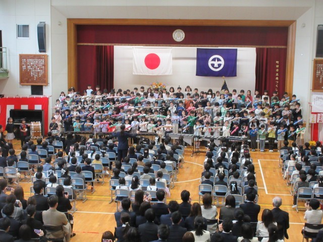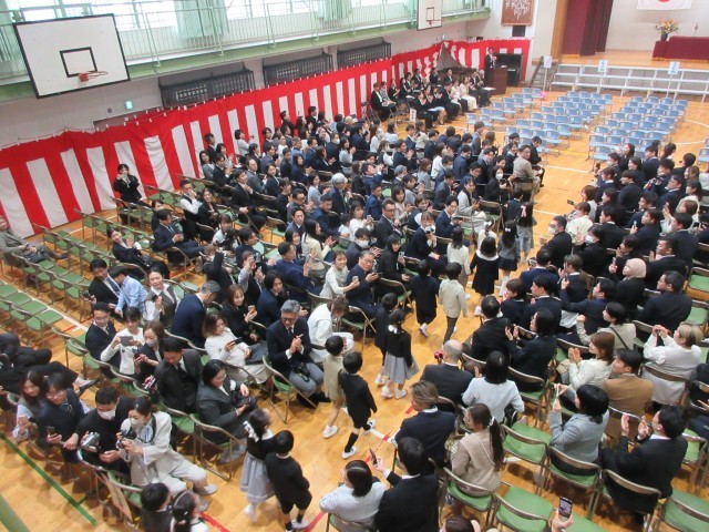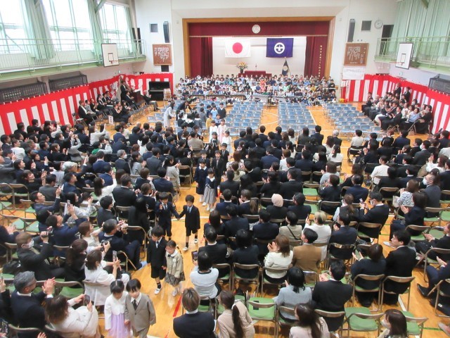 新1年生133日が本校に入学しました。緊張しながらも友達と手をつないで入場した1年英。校長先生からの「あひる」の話をしっかり聞いていました。