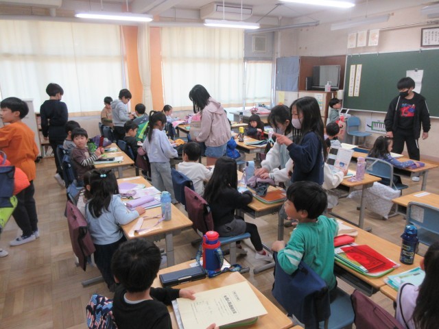 教室では、6年生がお手伝いをしていました。1年生にも早く楽しい学校生活を送ってもらえるように支援していきます。