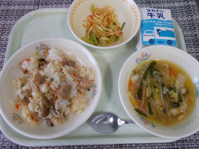 チャーハン ポテト入りナムル 中華スープ 牛乳