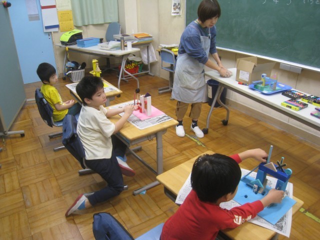 図工では、「すぎなタウン」の制作がすすんでいます。
