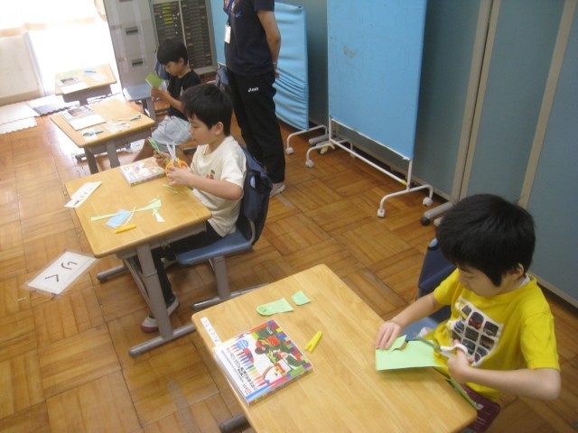 好きなイラストを描いて、はさみで上手に切り取っていました。