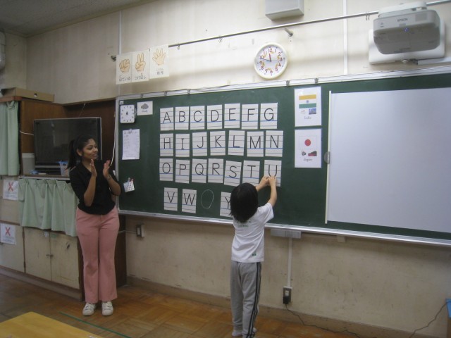ALTの先生にアルファベットの言い方を教えてもらいました。